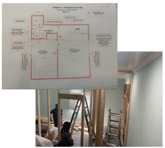 This project involved the conversation of a large game room to a smaller game room and bedroom/bathroom combo